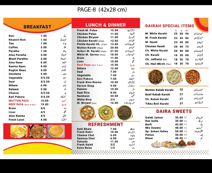 Beyond the exquisite food, Dairah Restaurant offers a warm and welcoming atmosphere, making it perfect for family gatherings or casual outings. Patrons appreciate the generous portions and the attentive service of the friendly staff, ensuring a delightful dining experience. Whether you’re craving hearty biryanis or savory kebabs, Dairah Restaurant guarantees a feast that showcases the essence of Pakistani flavors, inviting you back for more.