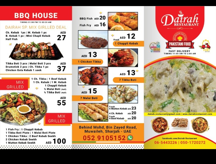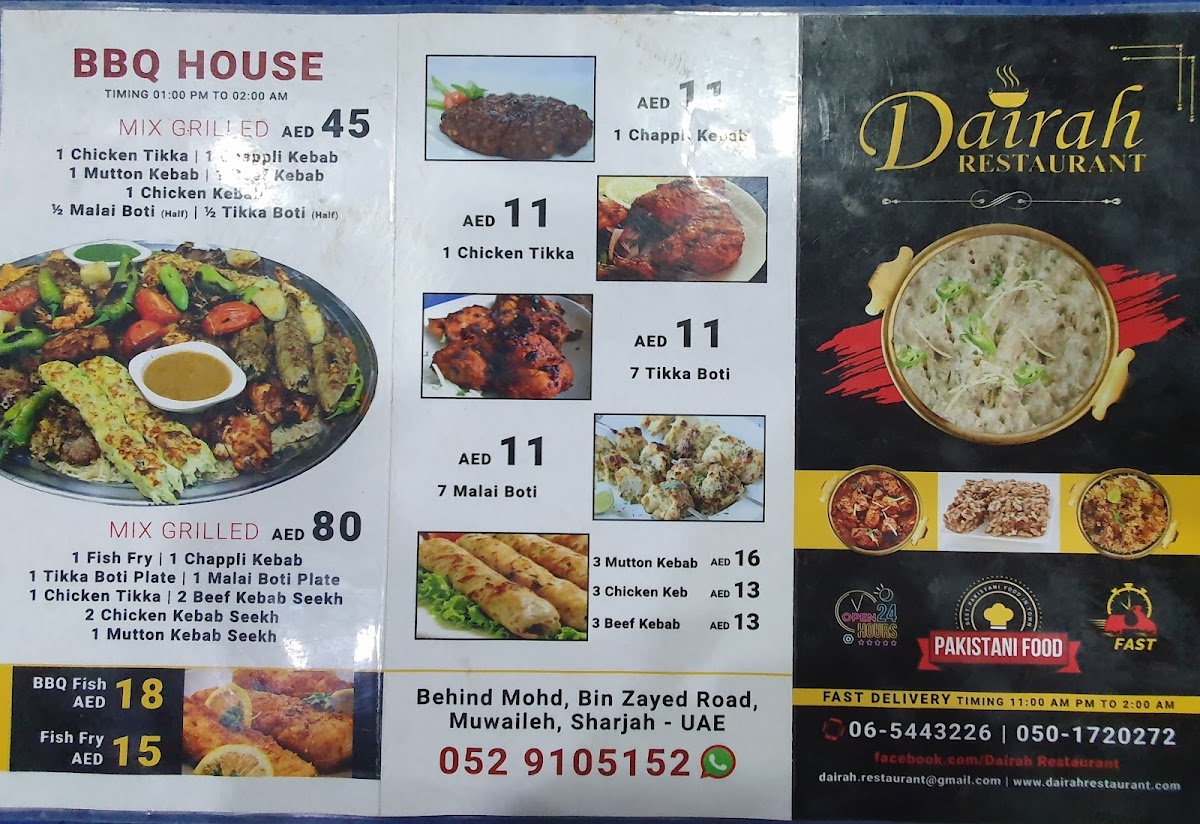 Nestled in the heart of Muwaileh, Sharjah, Dairah Restaurant is your go-to destination for authentic Pakistani cuisine. Renowned for its rich flavors and traditional dishes, the restaurant has captivated locals and travelers alike. Guests rave about the mouthwatering Mutton Karahi, celebrated for its tender meat, well-balanced spices, and delectable taste that promises to transport you straight to culinary heaven.